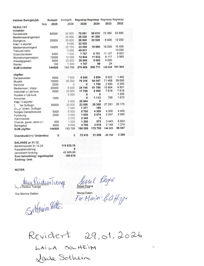 Årsmøtet ble avholdt 10.02.26 kl. 20.00 i Gulbygningen på Måno, Yrkesskulevegen 6, 2920 Leira Arsberetning 2025Last ned Økonomisk rapport for 2025Last ned Lovnorm-vedtekter for Valdres Swingklubb 10.02.26Last ned Regnskap 2025 og budsjett 2026Last ned Årsmøteprotokoll 2026Last ned